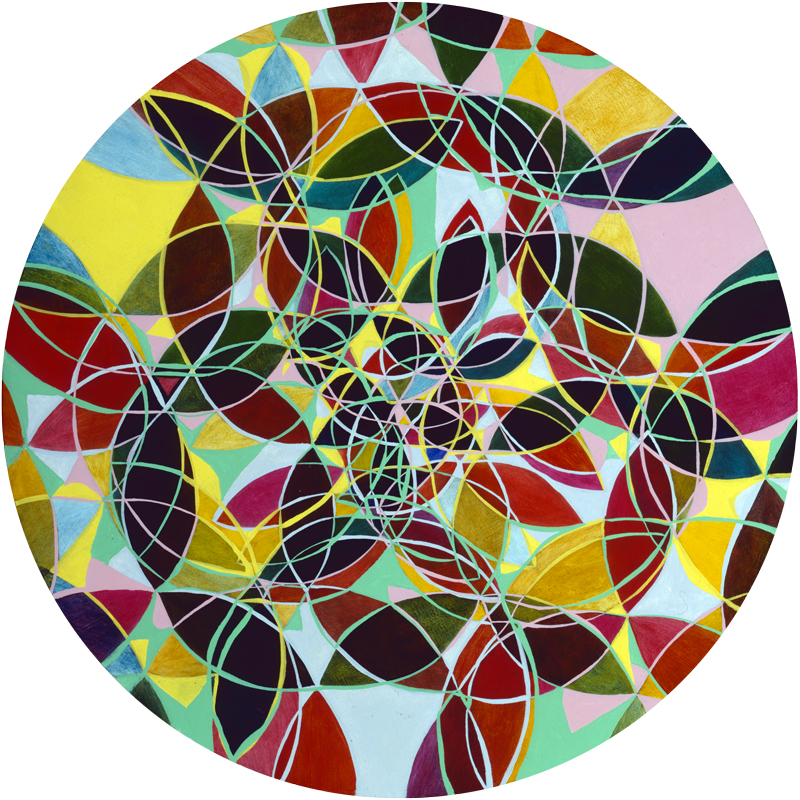 Fugue in Reflective Gamma #2 is part of the Tondo series of oil on wood panel. In this painting, completed in 2008, I examine my transparent and opaque color in close proximity. They are largely self-organizing.