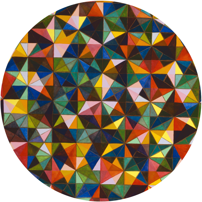Fugue in Reflective Gamma #3 is part of the Tondo series of oil on wood panel. In this painting, completed in 2008, I examine my transparent and opaque color in close proximity. They are largely self-organizing.